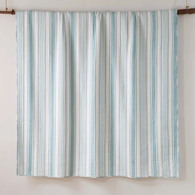 The Cape Coral Reversible Quilt Set by Levtex Home is inspired by a crystal clear ocean. This simple stripe design will immediately transform your bedroom. Made with the softest lightweight cotton, this reversible quilt features a teal and white stripe, reversing to a teal, grey, and white coral print on the other. The Quilt Set is machine washable and includes the quilt and matching pillow shams. Enjoy this for years to come!